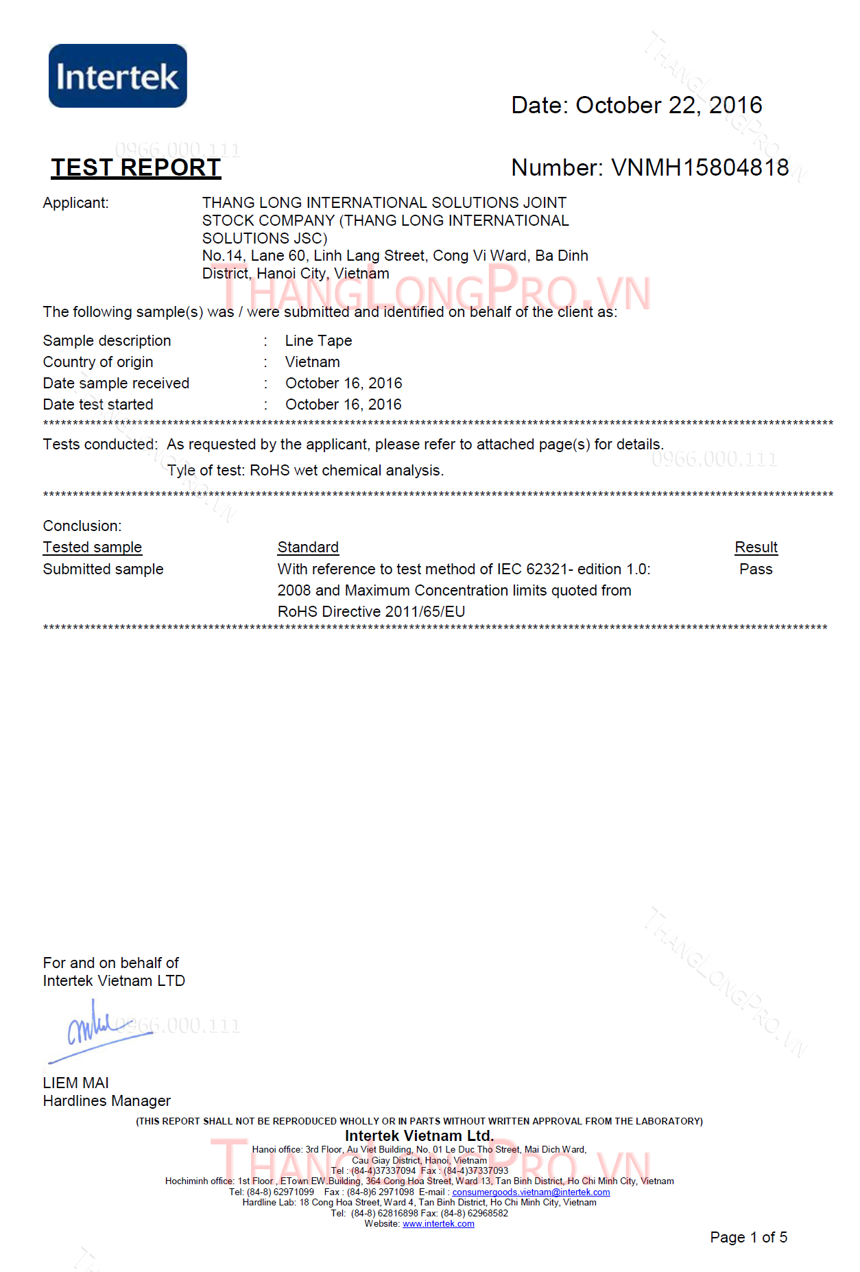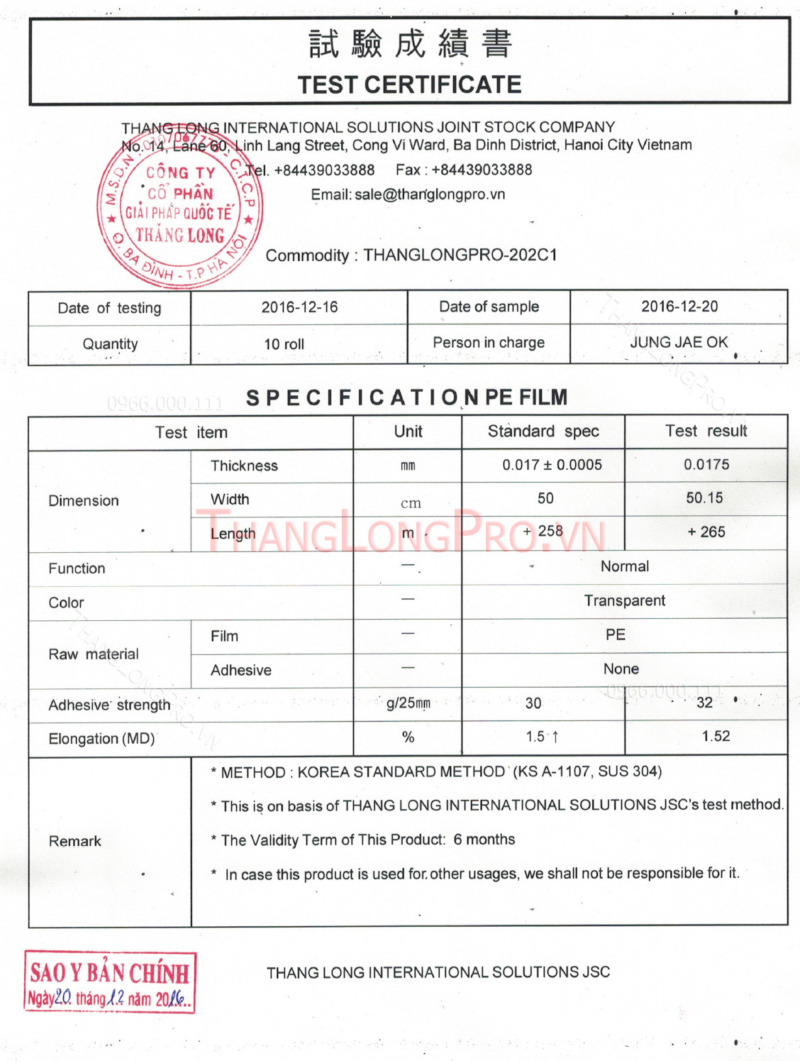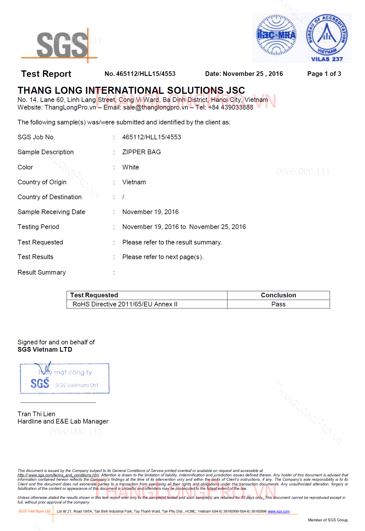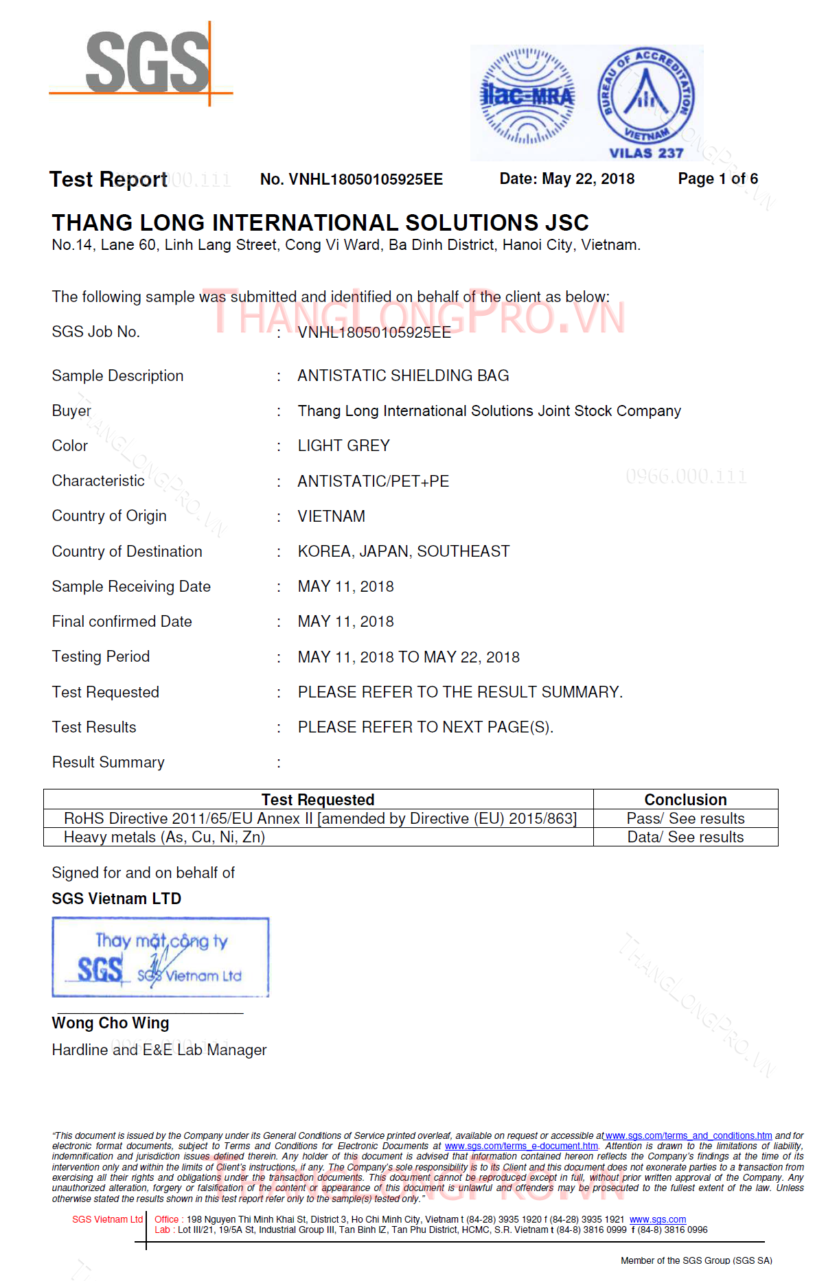 Chứng nhận chất lượng ISO - ROHs - MSDS - TDS Vui lòng liên hệ với nhân viên TƯ VẤN KHÁCH HÀNG để có những bản test chứng nhận sản phẩm mới nhất! < Trang trước Trang sau >